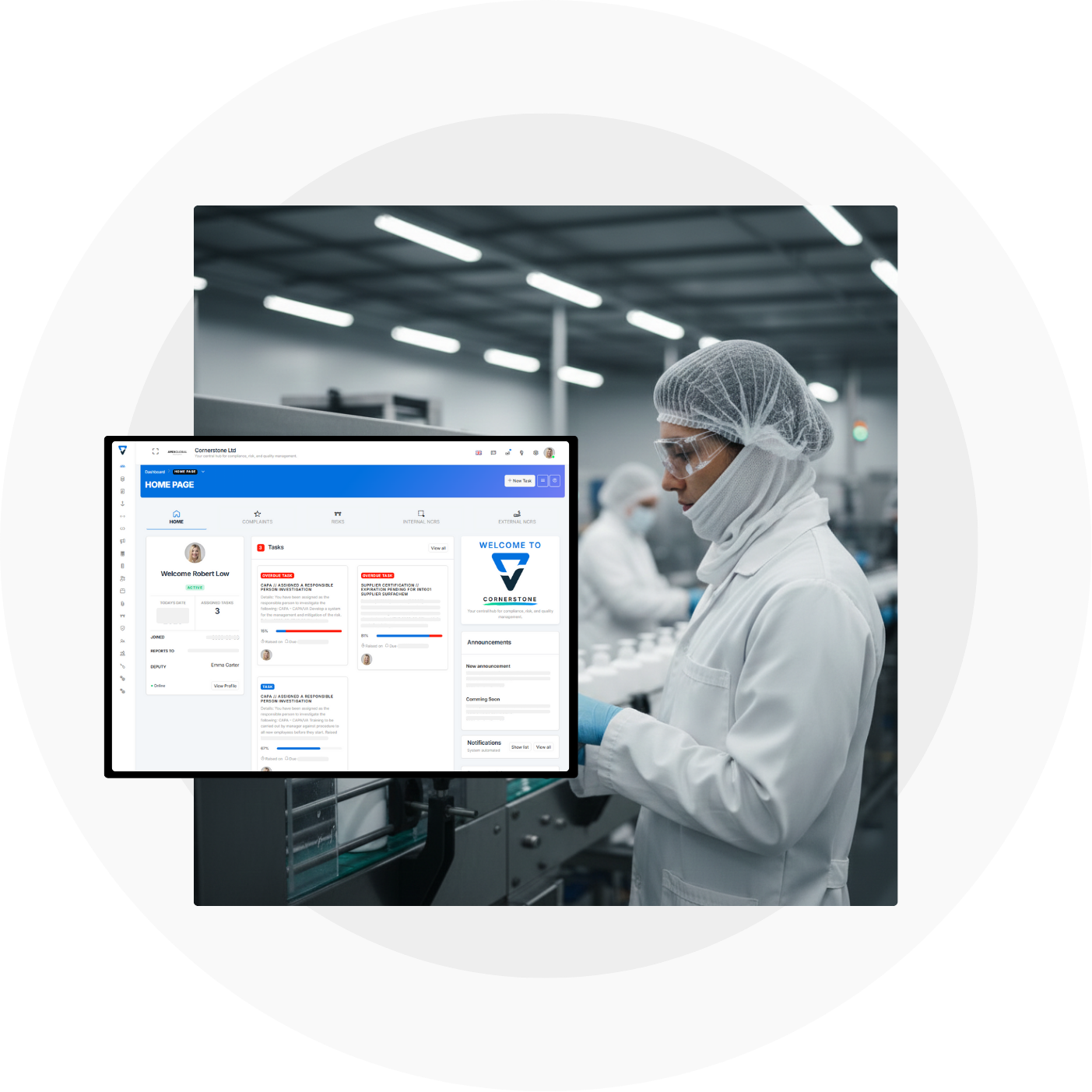 Cornerstone combines powerful compliance management software with real-world consultancy expertise, helping you achieve and maintain the standards that matter most to your business — without the complexity, hidden costs, or user restrictions of other systems.